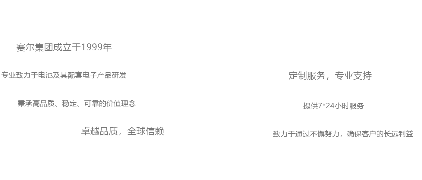 東莞市金賽爾電池科技有限公司成立于1999年,前身為深圳市鎳霸電池有限公司,是一家專(zhuān)業(yè)致力于電池及其配套電子產(chǎn)品研發(fā)、生產(chǎn)和銷(xiāo)售的高新技術(shù)企業(yè)。集團(tuán)下設(shè)江蘇(江蘇金賽爾電池科技有限公司)、東莞(東莞金賽爾電池科技有限公司)、安徽(安徽賽爾新能源科技有限公司)三個(gè)生產(chǎn)基地,擁有現(xiàn)代化標(biāo)準(zhǔn)廠(chǎng)房100000平方米,雇員2600余人,日產(chǎn)聚合物鋰電池600000支,圓柱鋰電池300000支,鎳氫電池150000支。集團(tuán)采用國(guó)內(nèi)一流的生產(chǎn)設(shè)備,以超前的研發(fā)技術(shù),先進(jìn)的生產(chǎn)工藝,嚴(yán)苛的品質(zhì)要求,高效的服務(wù)團(tuán)隊(duì),不斷創(chuàng)造行業(yè)佳話(huà)。自公司成立以來(lái),一直秉持品質(zhì)為先,服務(wù)至上,銳意進(jìn)取,不斷超越的企業(yè)宗旨,服務(wù)全球客戶(hù),贏(yíng)得廣泛贊譽(yù),已經(jīng)成為國(guó)際知名的電池生產(chǎn)企業(yè)。